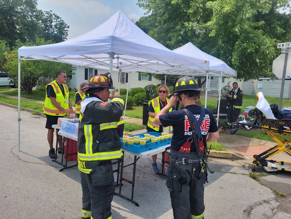 During the summer, misting fans are setup under cooling tents